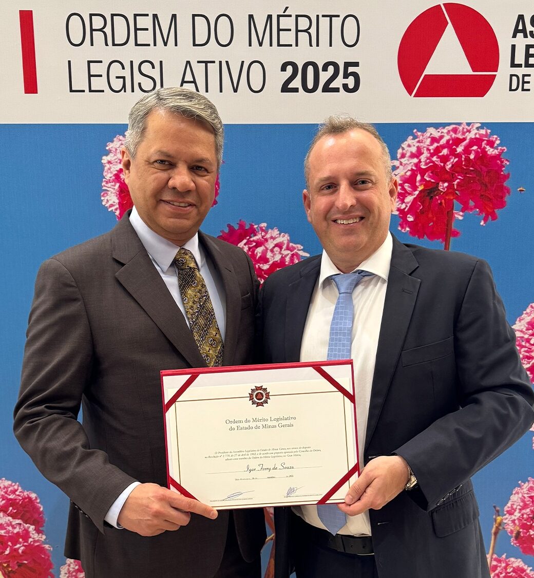 Em reconhecimento às iniciativas e aos trabalhos realizados em prol da sociedade e de relevante interesse público, o advogado Igor Ferry de Souza foi agraciado com a Medalha do Mérito Legislativo 2025. O tema da edição deste ano “Primavera, período de renovação e esperança” , teve como inspiração a estação das flores, associada à renovação e à esperança, com destaque para os ipês, árvores emblemáticas de Belo Horizonte.